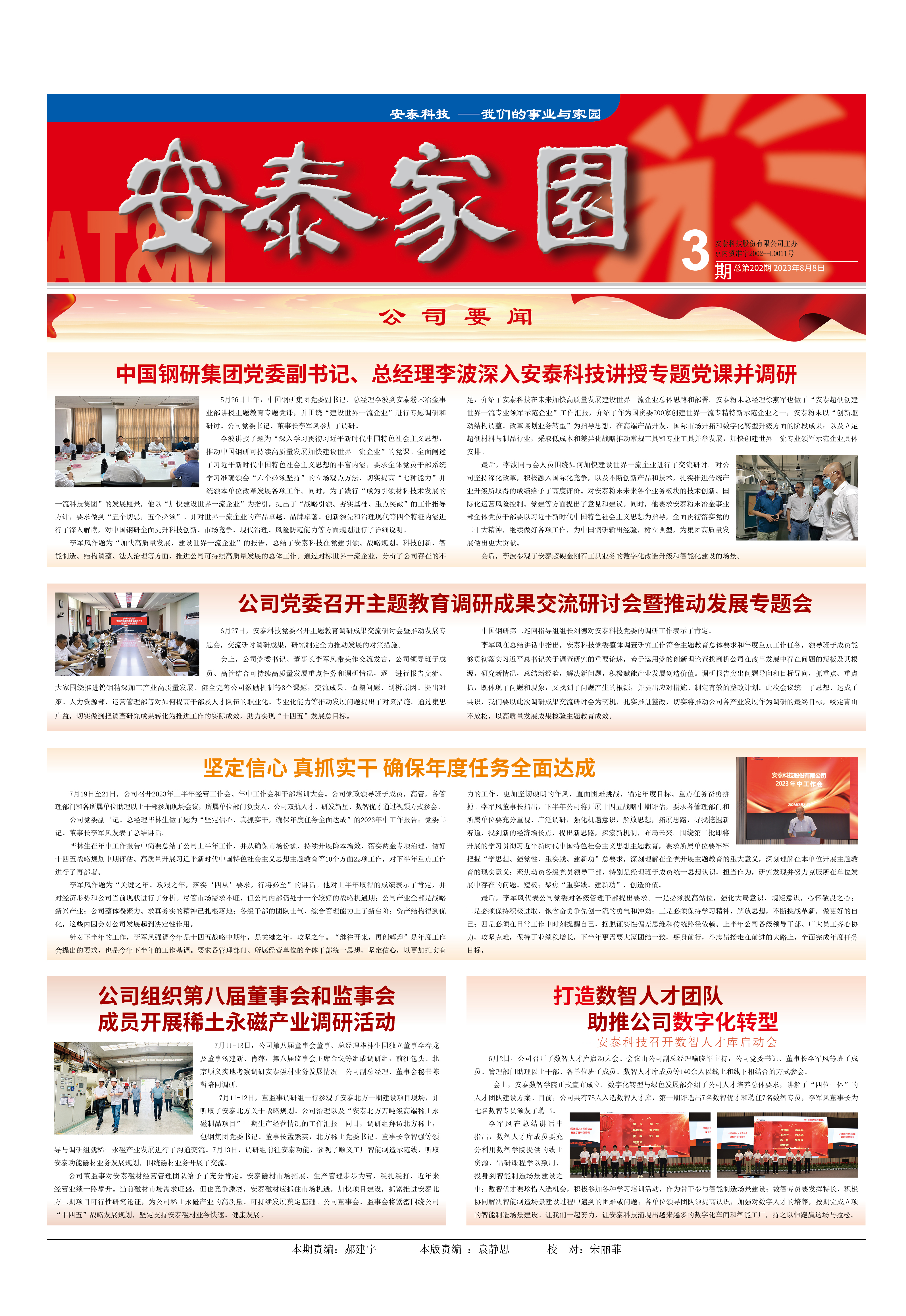 最后,李波同與會人員圍繞如何加快建設(shè)世界一流企業(yè)進(jìn)行了交流研討。對公司堅持深化改革,積極融入國際化競爭,以及不斷創(chuàng)新產(chǎn)品和技術(shù),扎實推進(jìn)傳統(tǒng)產(chǎn)業(yè)升級所取得的成績給予了高度評價。對安泰粉末未來各個業(yè)務(wù)板塊的技術(shù)創(chuàng)新、國際化運營風(fēng)險控制、黨建等方面提出了意見和建議。同時,他要求安泰粉末冶金事業(yè)部全體黨員干部要以習(xí)近平新時代中國特色社會主義思想為指導(dǎo),全面貫徹落實黨的二十大精神,繼續(xù)做好各項工作,為中國鋼研輸出經(jīng)驗,樹立典型,為集團高質(zhì)量發(fā)展做出更大貢獻(xiàn)。