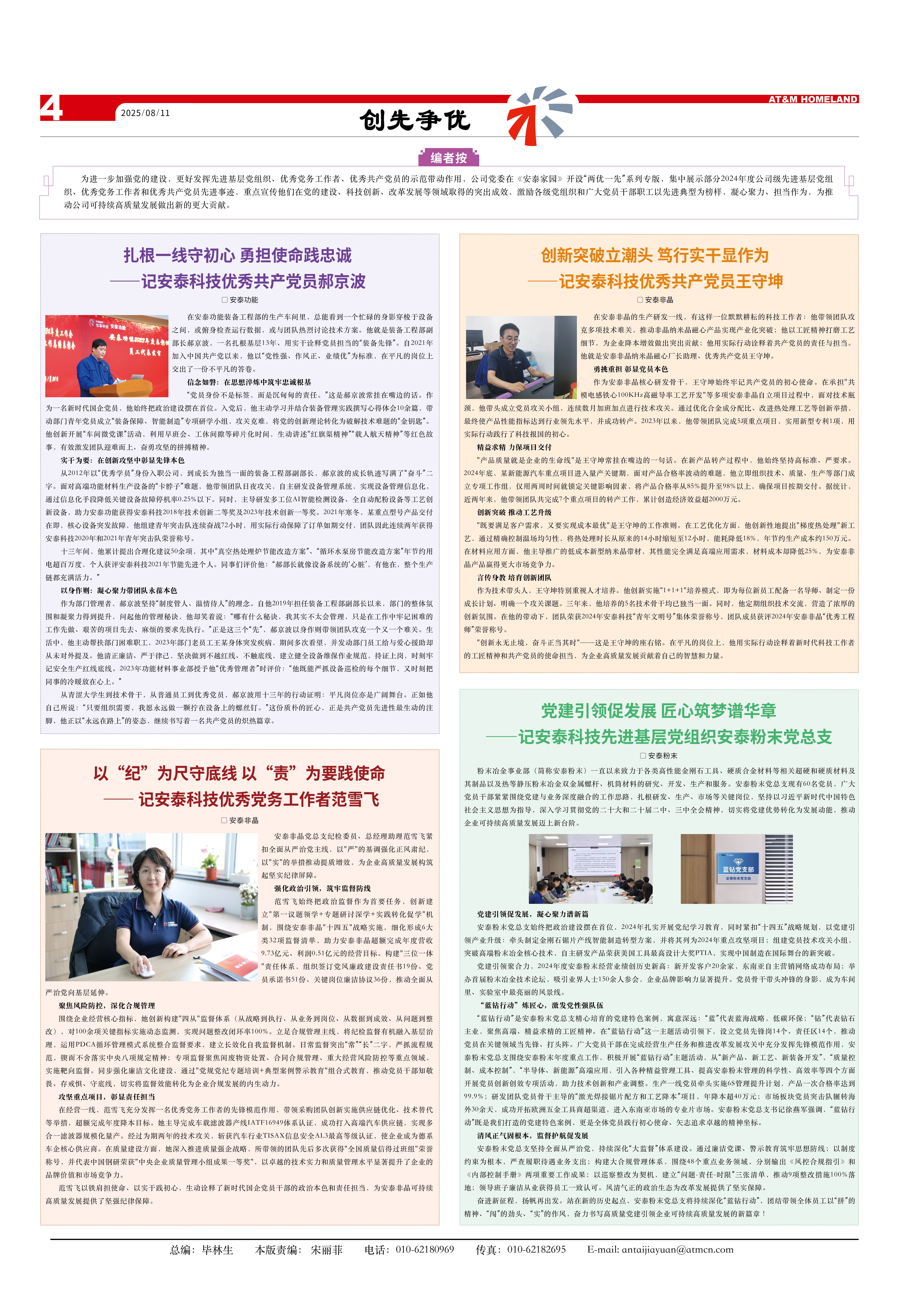為進一步加強黨的建設(shè),更好發(fā)揮先進基層黨組織、優(yōu)秀黨務工作者、優(yōu)秀共產(chǎn)黨員的示范帶動作用,公司黨委在《安泰家園》開設(shè)“兩優(yōu)一先”系列專版,集中展示部分2024年度公司級先進基層黨組織、優(yōu)秀黨務工作者和優(yōu)秀共產(chǎn)黨員先進事跡,重點宣傳他們在黨的建設(shè)、科技創(chuàng)新、改革發(fā)展等領(lǐng)域取得的突出成效,激勵各級黨組織和廣大黨員干部職工以先進典型為榜樣,凝心聚力、擔當作為,為推動公司可持續(xù)高質(zhì)量發(fā)展做出新的更大貢獻。