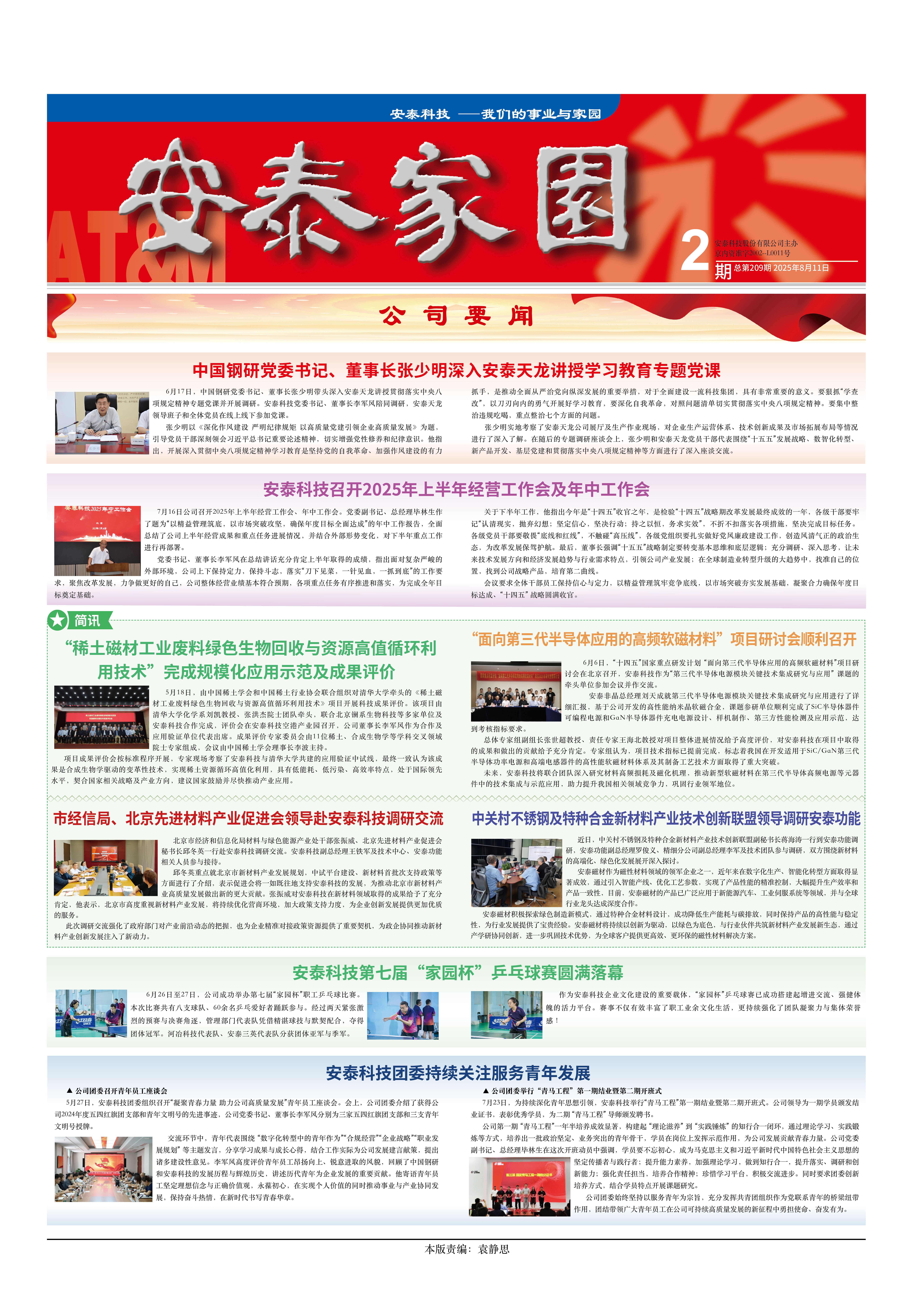 6月17日,中國(guó)鋼研黨委書記、董事長(zhǎng)張少明帶頭深入安泰天龍講授貫徹落實(shí)中央八項(xiàng)規(guī)定精神專題黨課并開展調(diào)研。安泰科技黨委書記、董事長(zhǎng)李軍風(fēng)陪同調(diào)研,安泰天龍領(lǐng)導(dǎo)班子和全體黨員在線上線下參加黨課。